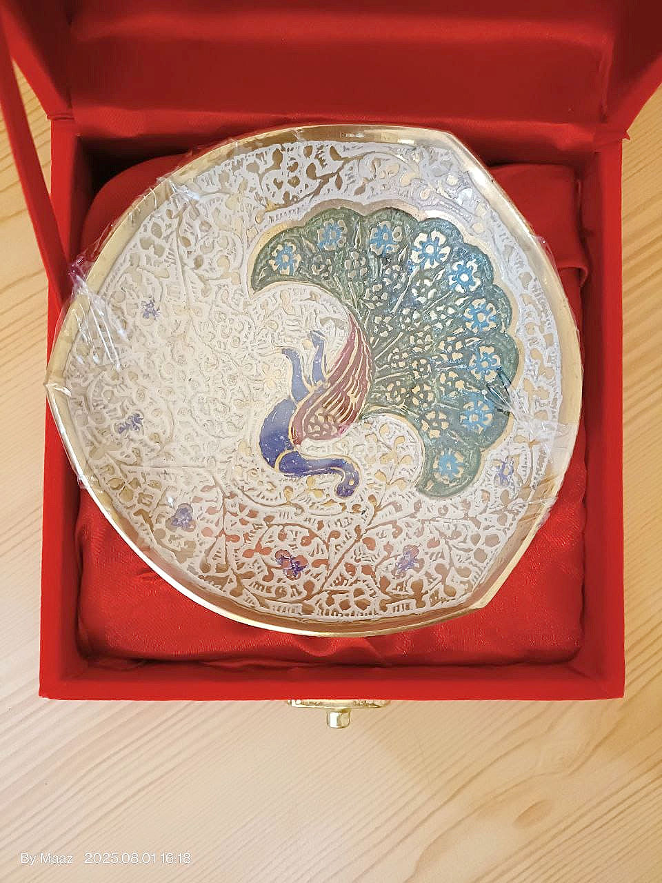 Beautifully Handcrafted Blue Peacock Brass Bowl in Premium Red Velvet Box